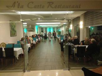 | Efter duschen var det dags för aperitif i lobbybaren och middag på restaurangen. Proppmätta IGEN! Så en drink efter maten var också tvunget att ta. Då kom Willy och underhöll oss med diverse konster och berättelser. Bl a beat-box som var kanon. | |||