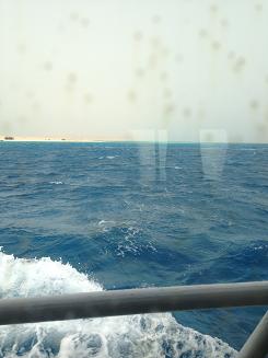 | Innan vi stannade på tredje stället fick vi god lunch på båten och stannade till vid en strand som kallades Paradise. Det hade det nog varit om det inte varit sandstorm. Vi tog en öl på baren på ön. Alkoholfri! Smakade melass!!! Men mig gjorde det inget. |