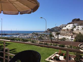 Det hade vi INTE! Så lyxigt och fint med utsikt över marinan i Puerto Rico. Vi tog