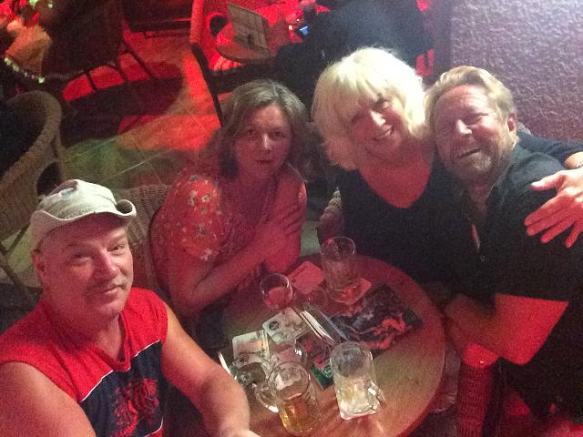 | Snart var det dags att bege oss till karnevalen och titta. Vi hittade ett ställe där vi tog något att dricka. Det var så mycket att titta på så man hann inte ta kort på allt. Vi förflyttade oss till en lite lugnare bar där vi fick plats allihop. Som allt annat så tog även denna kväll slut och det var dags att bege sig hem till Amadores. | |||
