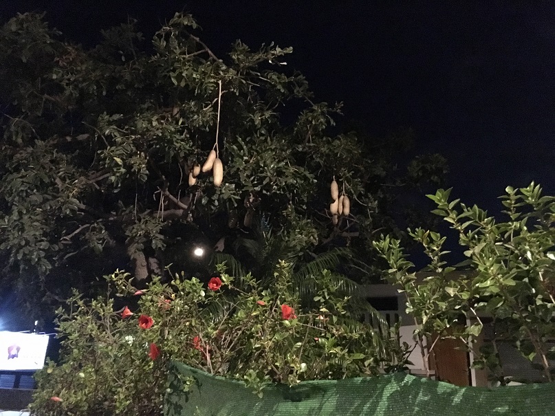 | Vi stannade rätt länge. Vi gick ut och åt. På vägen till taxin hittade vi ett träd som såg skumt ut. Ett korvträd. Fräckt! Efter en dag på stranden kom vi hem men då spelade vi kort och fick ett åttutning för att vi var högljudda. Men vaddå? VI har semester. |