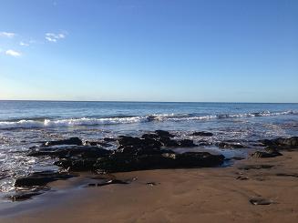 Idag tog vi morgonpromenaden och ett dopp tillsammans. Underbara vågor och klarblå himmel. När vi kom tillbaka | ||