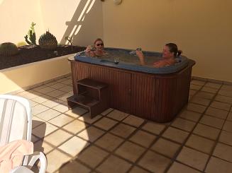 | Efter frukost kom Tom på besök, en belgare som jobbar för HC och inbjöd oss till frukost och information om HC på torsdag. Vi tackade ja. Eftersom det var varmt så var det skönt att jacuzzin var sval. Vi badade i poolen och slappade resten av dagen. | |||